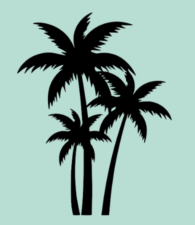 Design: Palm tree graphic on front; beach chair and umbrella scene with permanent destination on back